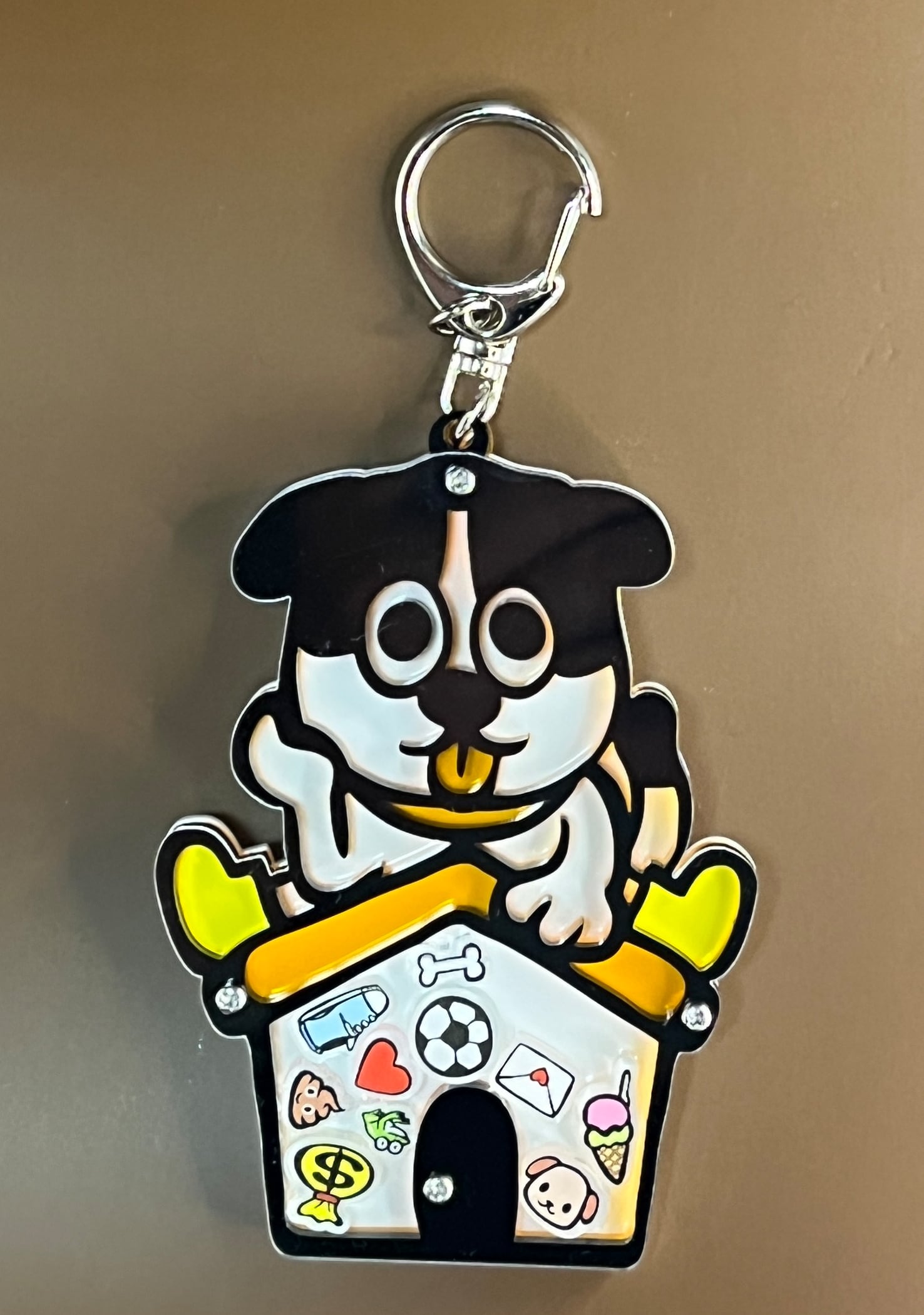 ワンちゃんハウスの「シャカシャカ 」アクリルキーホルダー。