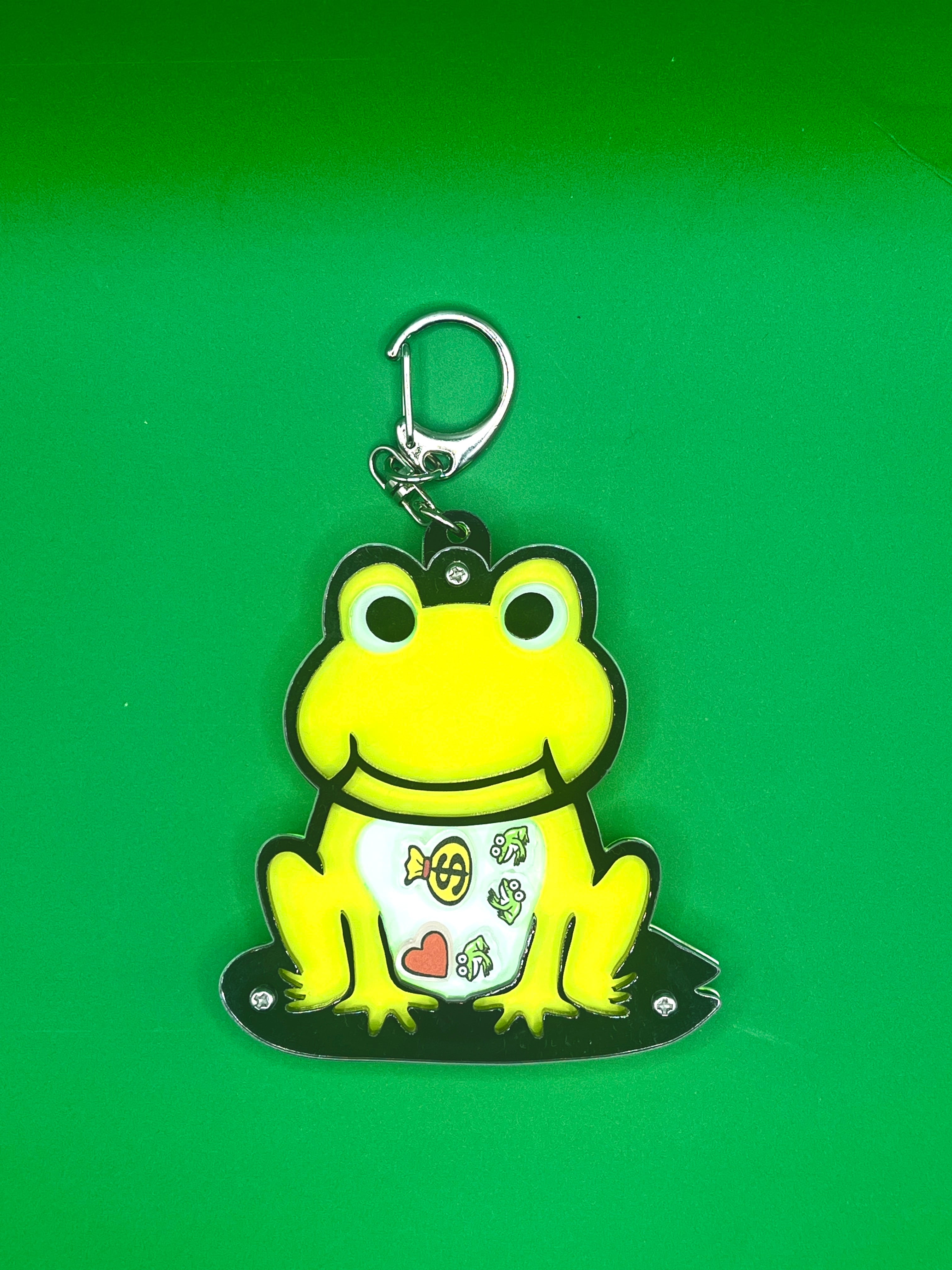蛍光グリーンがキラキラ光るカエルのシャカシャカアクリルキーホルダー。