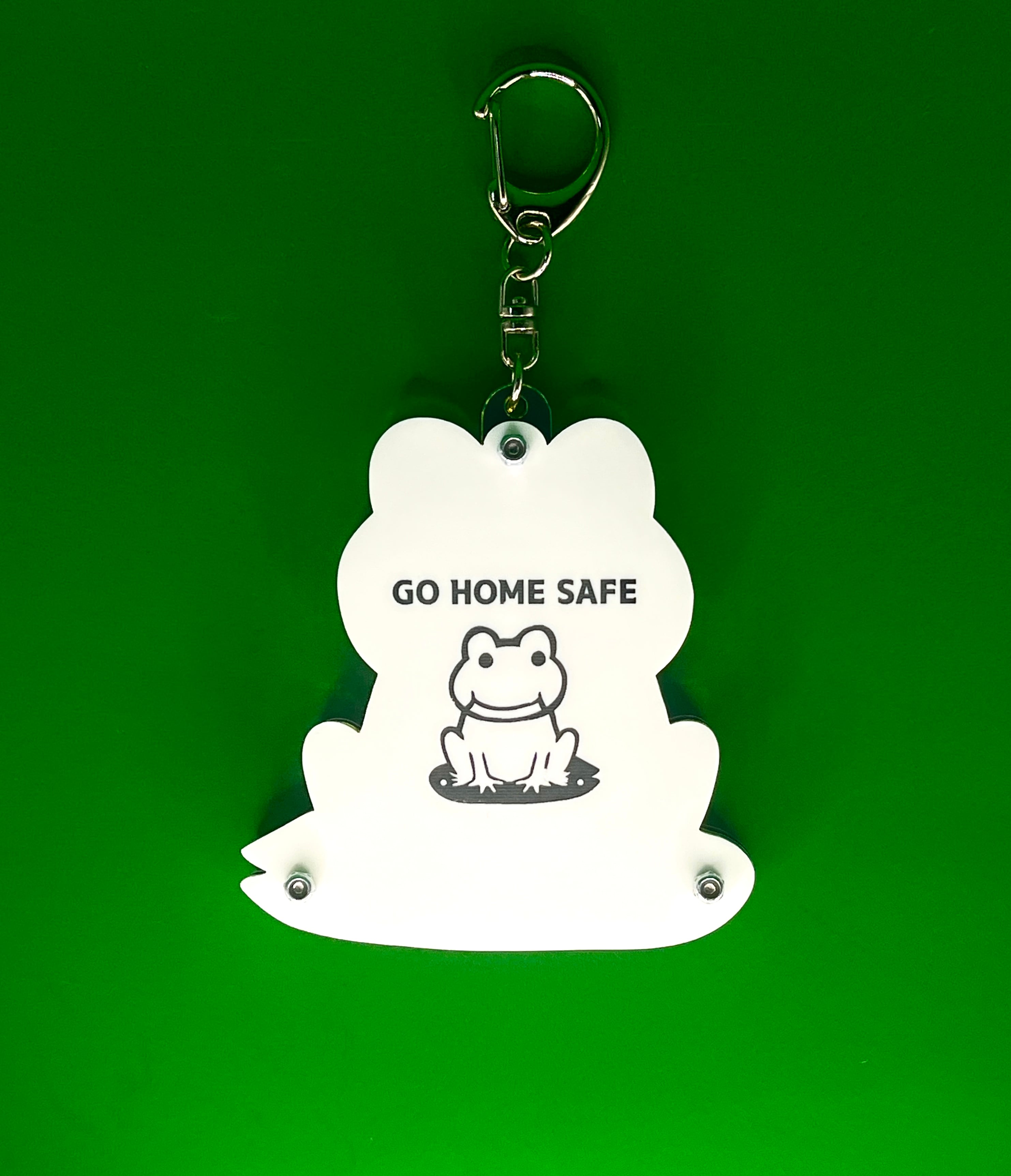 手のひらサイズのコンパクトなデザインで、バッグやポーチに付けて持ち運ぶとかわいいカエル好きにはたまらないチャーム。大切な人が安全に帰ってくるメッセージが入っていて、お守りにもピッタリです。