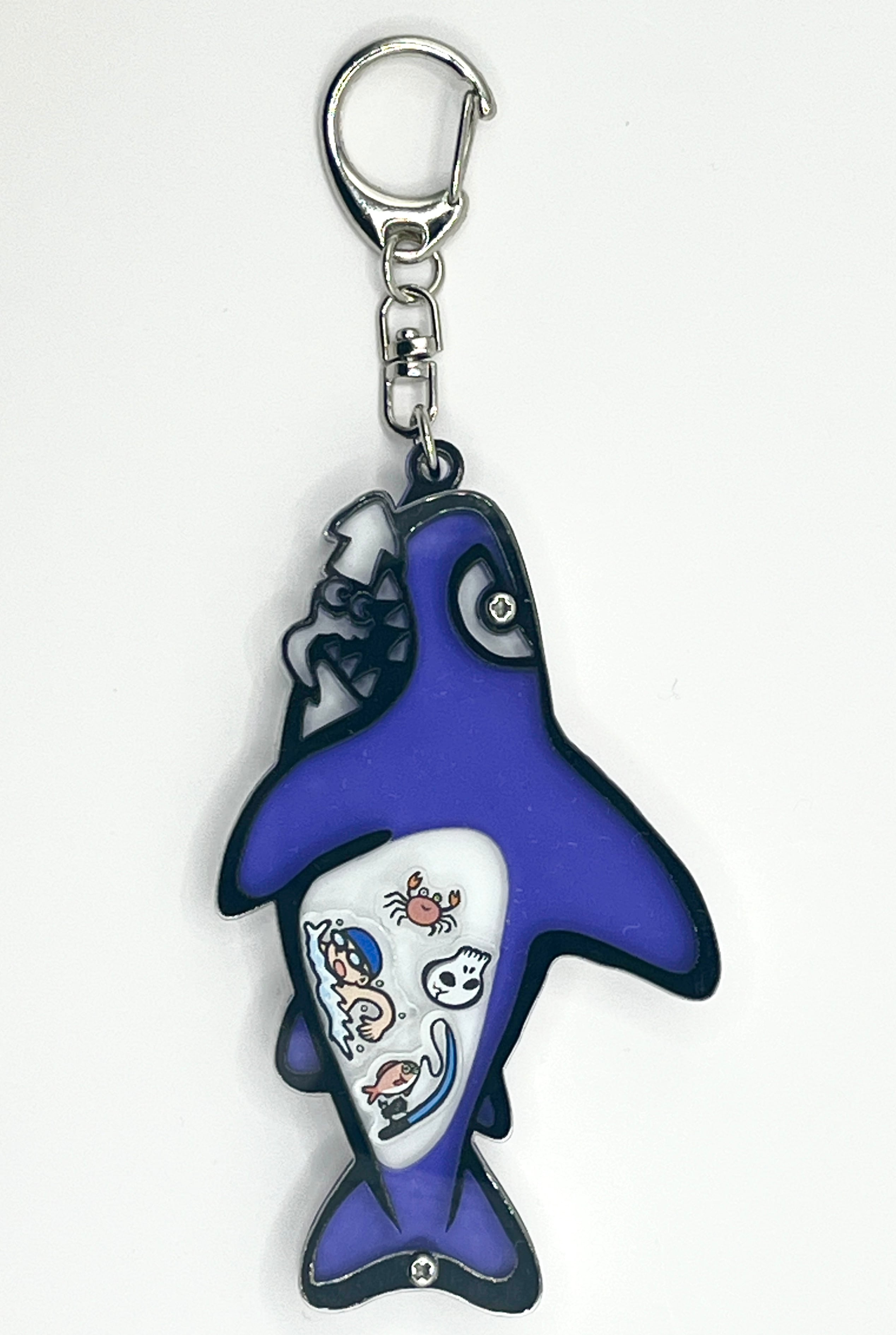 海のハンター・狂暴な人食いサメが食べたモノがお腹の中でシャカシャカするアクリルキーホルダーです。
